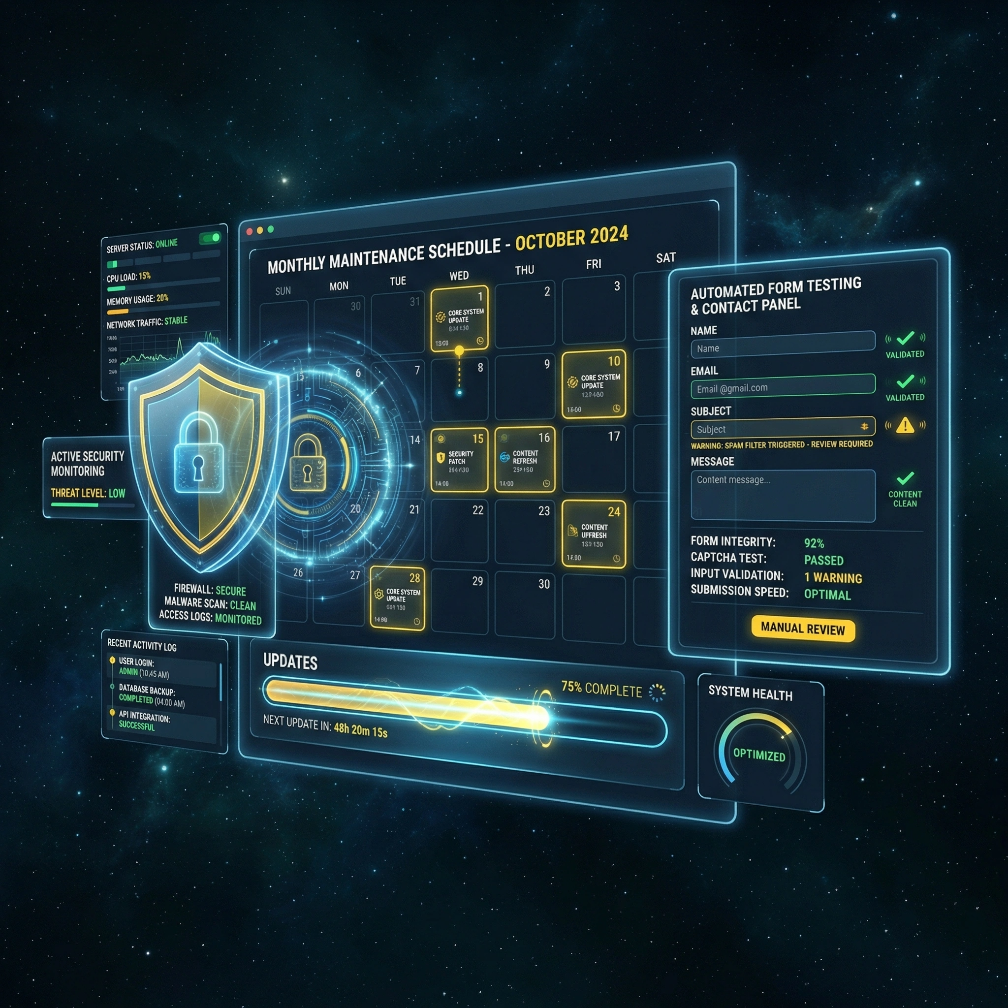 Regular maintenance, updates, and security monitoring are essential to keep your website running smoothly and safely. This service includes performing routine WordPress core updates, plugin and theme updates to ensure compatibility and performance, as well as implementing robust security measures to protect against malware, vulnerabilities, and unauthorized access. By maintaining consistent backups, monitoring uptime, and applying the latest patches, your website stays fast, secure, and fully optimized — giving you peace of mind and ensuring visitors enjoy a reliable experience.