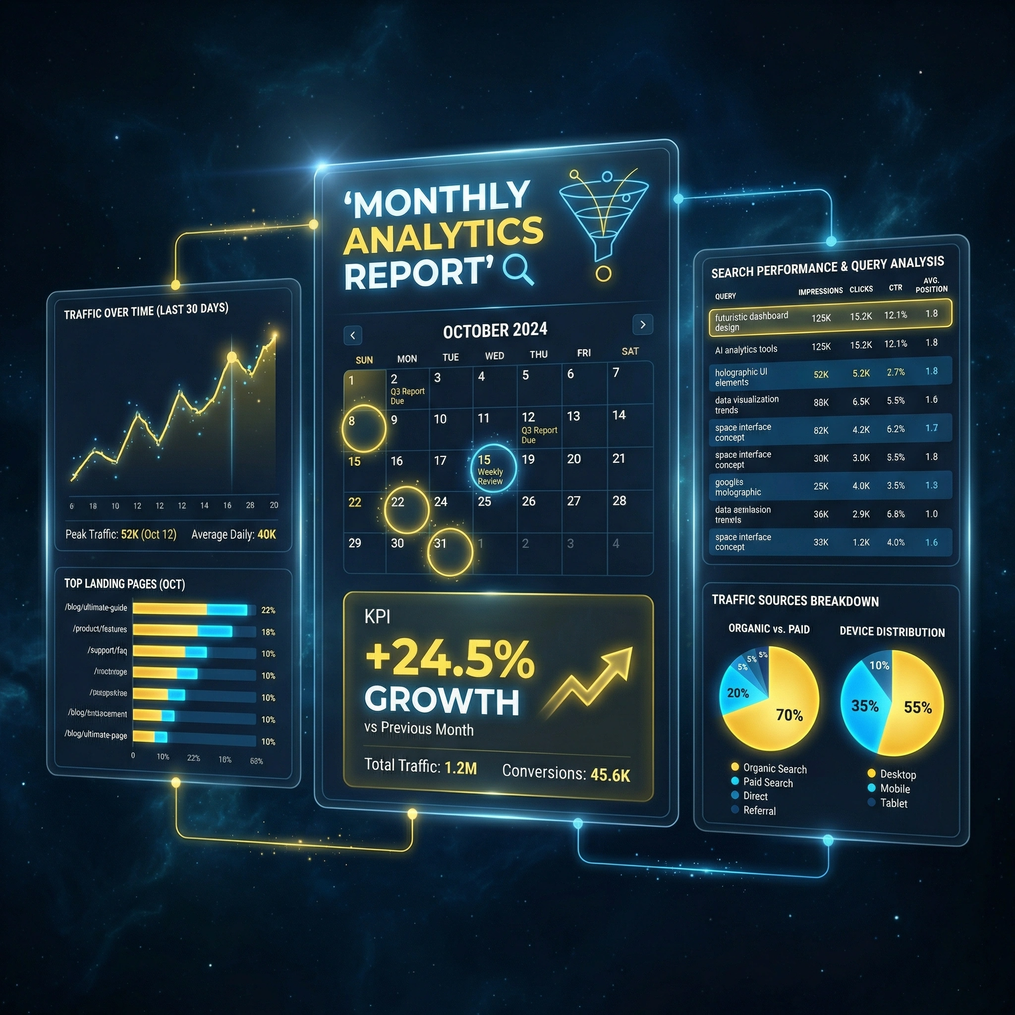 Monthly Analytics and Search Console reporting provides a clear view of your website’s performance, visibility, and audience behavior. Each month, we analyze key metrics such as traffic sources, user engagement, and top-performing pages using tools like Google Analytics and Search Console. This includes tracking keyword rankings, impressions, and click-through rates to identify growth opportunities and areas for improvement. By translating data into actionable insights, these reports help guide strategic decisions to strengthen your website’s reach and effectiveness over time.